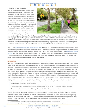 ment in supporting land use and urban form goals. The Washington County TSP Pedestrian Element contains similar