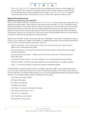 region’s transportation system. Metro adopted the most recent update of the RTP in July 2014. The RTP establishes