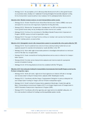 ADOPTED TEXT • Strategy 10.4.3 Seek non-traditional funding alternatives and sources to enhance the transpor-
