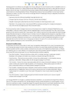 Table 3.7. The system average PCI of 81 indicates that the County’s overall road system is in Good condition, and all