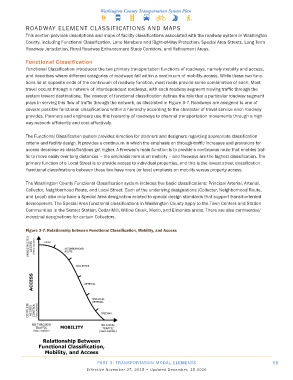 and describes where different categories of roadways fall within a continuum of mobility-access. While these two func-