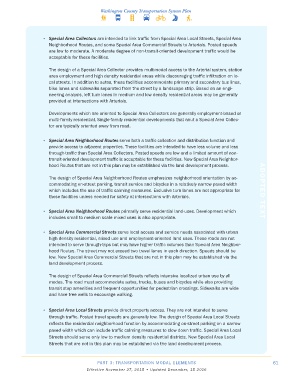 • Special Area Collectors are intended to link traffic from Special Area Local Streets, Special Area