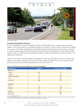 Table 3.8 summarizes the mileage of different classifications of roads within Washington County. The Functional Clas-