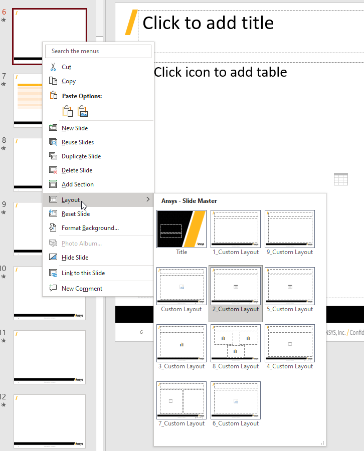 Create slides from these layouts.