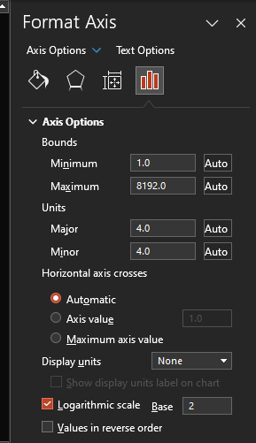 Setting to enable logarithmic values on the value axis (Y axis) only.