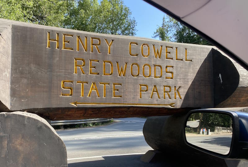 After leaving Pidgin Point Lighthouse, Polly, Helen, and I stopped at Davenport for lunch. A person there told Polly that the best way to get to Henry Cowell Redwoods State Park was to go up Bonnie Doon Road from Hiway 1. It was nice, going from the coastal shrub into the redwoods of Big Basin. We only saw a bit of the burned area. Polly had wanted to see the trees that were recovering by sprouting directly out of the charred trunks. We did pass a few of those. We came to Felton and given choices, decided to get gas there. The price wasn't bad. It was a short drive to the park. I don't think I have ever been there, because I think I would certainly remember. I have seen many forests, and this might have been the prettiest. Just awesome redwoods, with a well-maintained paths that meandered through them for about a mile, but also kept you off of the roots. These trees were bigger than the ones at Muir Woods and possibly the ones at Armstrong Redwoods.