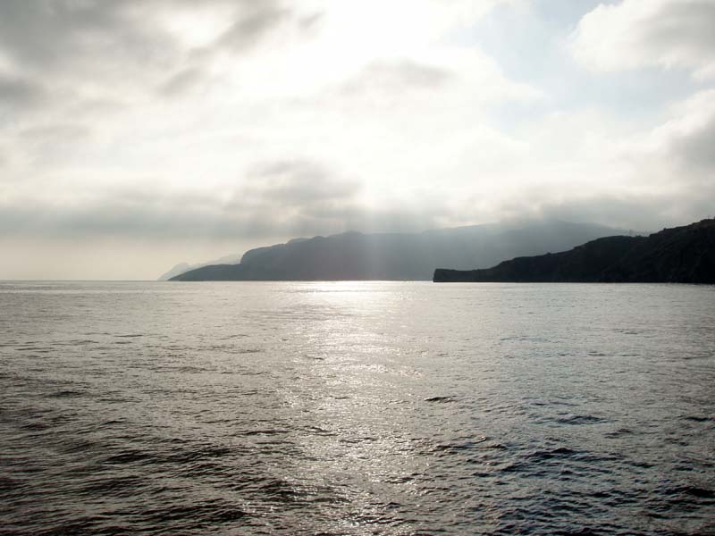 It was still before the rains, so the brush along the shore was thin and dry with occasional green patches of chapparel. In each cove was a deep narrow