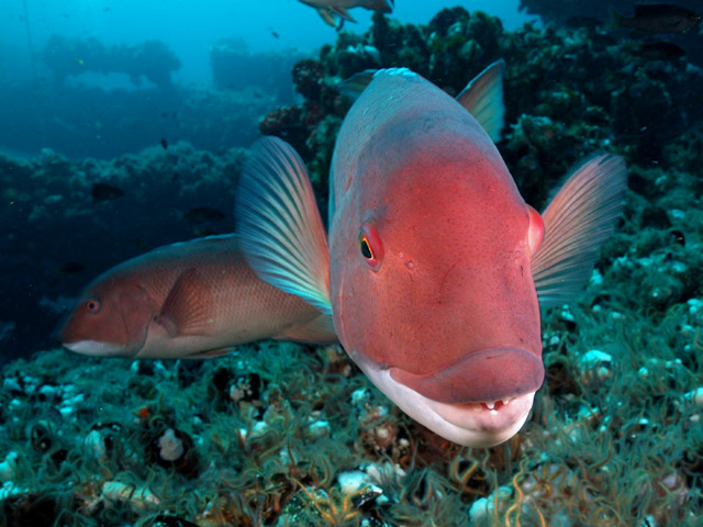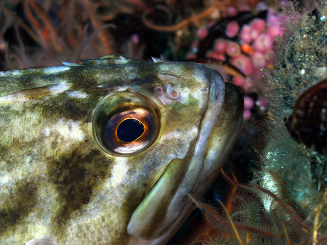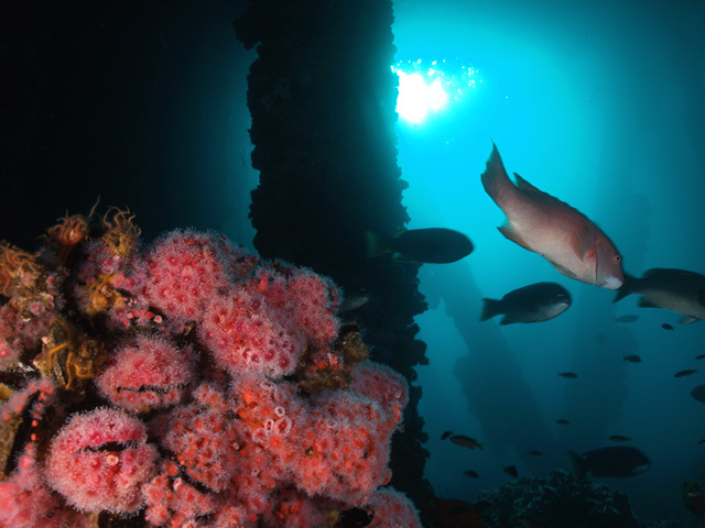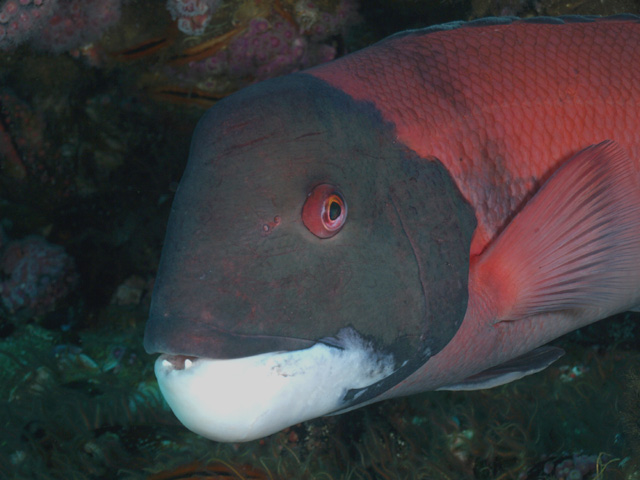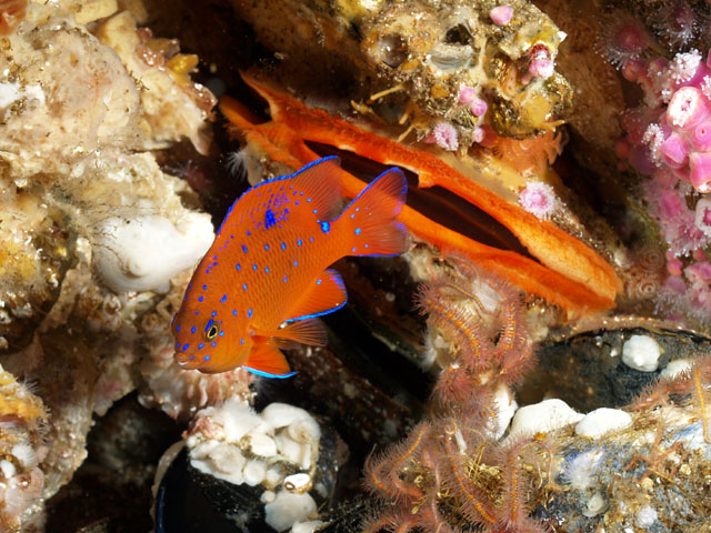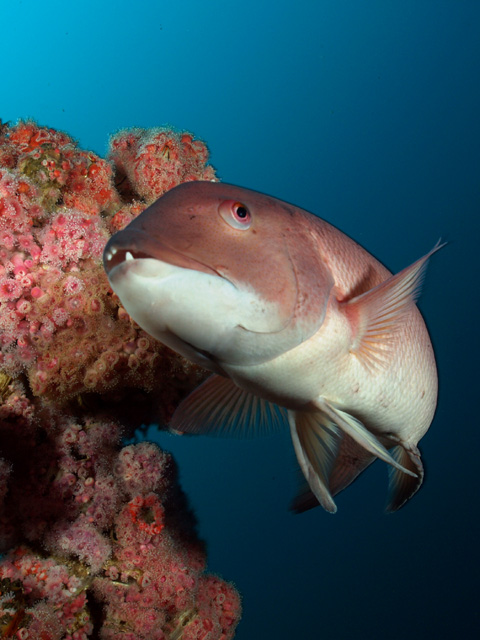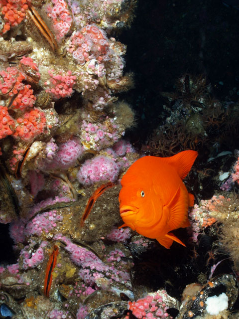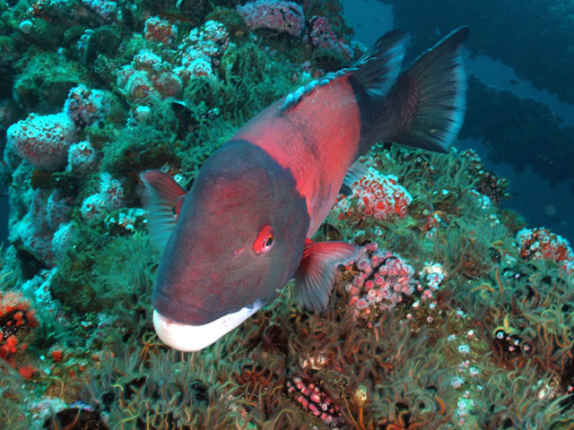 Great conditions! Corynactus anemones with sheephead and schooling blacksmiths