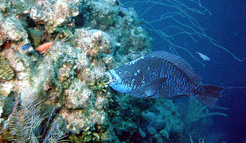 This Midnight Parrot fish was munching away on the coastal barrier reef.