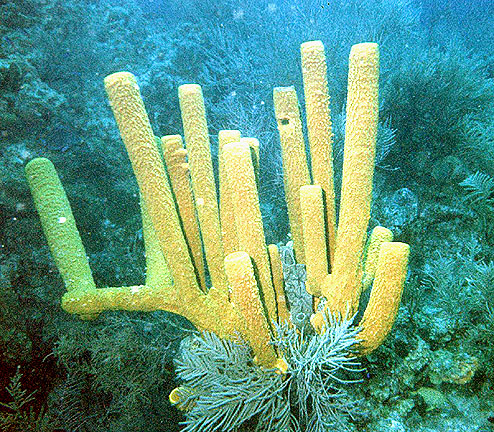 Sorry about the download time on that one, but I managed to get a pretty fair shot of a very large yellow sponge. Really, the pic can hardly do it any justice. It is beautiful and while this one was large, they have a very delicate appearence.