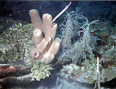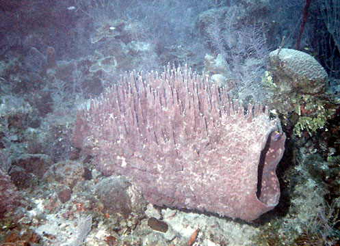 Another of the common sponges were these huge red ones. They can stick up near 7 feet. Most are upright on walls or steep inclines. This one was out in the open and had fallen over. It then started to grow up again. Who knows what it would look like in a year?