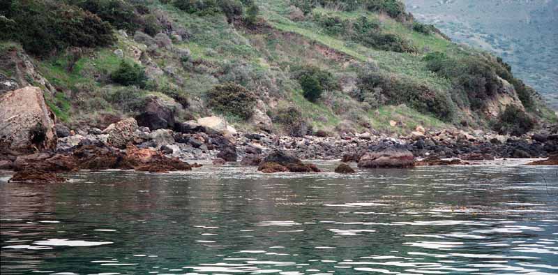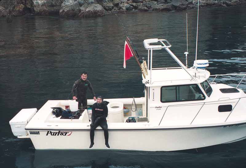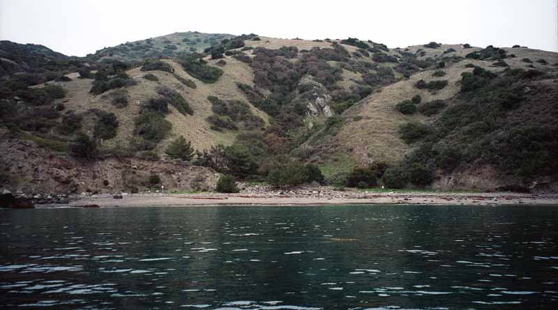 The morning was cool and foggy. The island was beautiful with a start of the green of spring. We were taking our time travelling along the shore, looking at the coves and rocks. Sometimes we would meter, looking for reefs that might be in deeper water off of rock formations sticking out from shore. This is what I like most about a private boat, slowly exploring along the shores that a charter boat never passes. It is all beautiful and you never know what you will see. If a small kelp bed catches your eye, it is time to explore. Some of my best diving has been found that way.