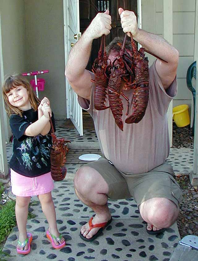 Normally when hunting lobster, I don't try to conserve air. I am in a sprint. Skip breathing can lead to a headache or worse. I moved towards the boat and if a bug looked legal, I put it in the bag. I actually missed a couple of grabs and then realized that the problem was that I was grabbing, not swatting. I was still mostly moving over the short thin eel grass in sand. There were a lot of small crabs with one big claw that moved in a panic when I hit them with my light. I saw a bat ray about a foot across and had to check it out. It was beautiful, but taking time to check it out is why there are better lobster hunters than myself. I kept seeing lobster, some small, some legal. Every time I saw one I checked my gauges. It seemed all were at 29 feet. I was breathing as slow as I could. I tried to put each bug in the bag using only one breath. Most took two. At 100 psi, I decided it was time to go up. I could barely feel the pull of the regulator as I surfaced about 25 yards from the boat. At the boat, I quickly measured and threw a few shorts back, but I still had done good. Most were well over legal size. I had never hunted the sand like that before. I have hunted the sand at the base of the reef, but never that far out in the open. Usually you only find rare strays out there. Besides, Catalina usually drops off too fast for there to be any sand flats.