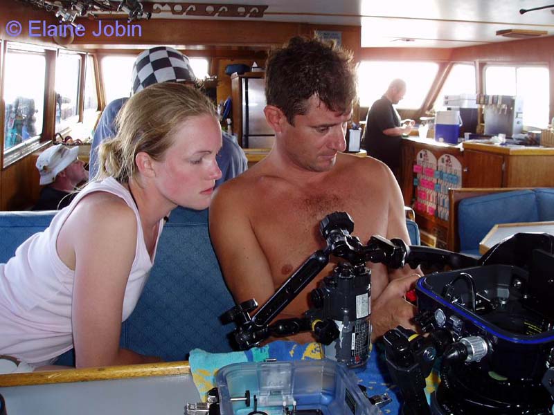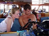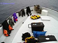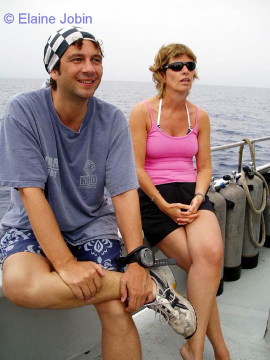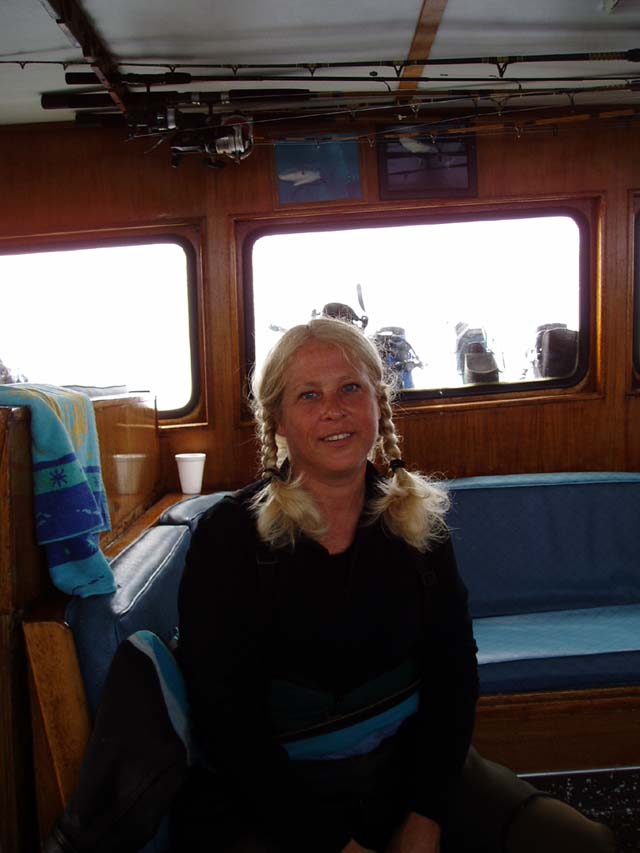 The other divers on this trip were from the UK. They had been out on the previous days shark dive and had been skunked - an entire day of effort and no sharks. Captain Bob blamed the poor results on a lack of wind and current. Today, the wind had picked up a little and they planned a different offshore site.