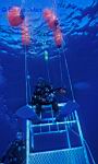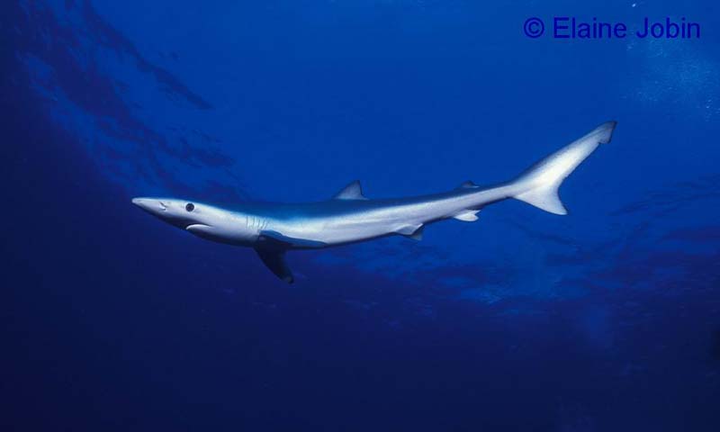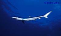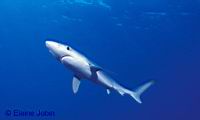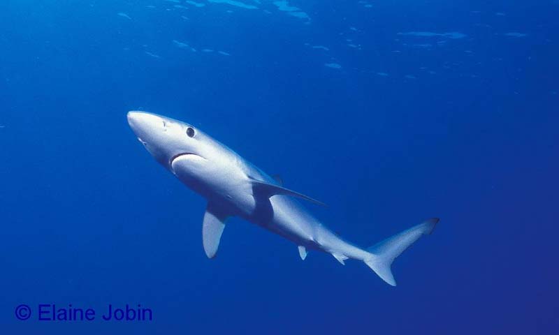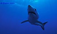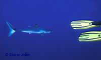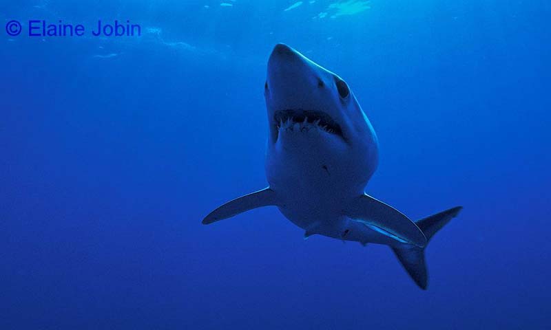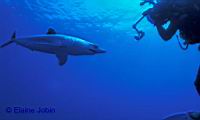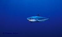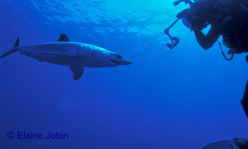As soon as my camera was in the rinse tank and my feet were on deck, someone started shouting "shark". With 1900 psi still in my tank, I reclaimed my camera and I rolled back into the water. As I swam back to the cage I got my first glimpse of the shark. It was a small maco, and then another shark, a blue.