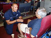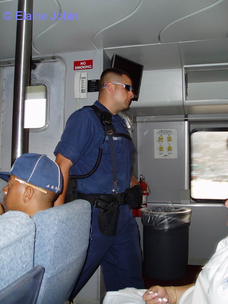 Officer Gonzalez then stayed and struck up a conversation. He explained that he was a "Sea Marshal" as part of a program with the U.S. Coast Guard and Homeland Security. He is similar to an "Air Marshal", except an air marshal is not uniformed. The Sea Marshals are now traveling routinely on Catalina Express boats. He explained to me what they do and, that if there were an actual terrorist threat aboard the boat, they wouldn’t handle it by themselves, the Coast Guard would be much more involved. Officer Gonzales then went around the boat talking to passengers and spreading the word about their presence. He was actually extremely personable, reassuring, and informative.