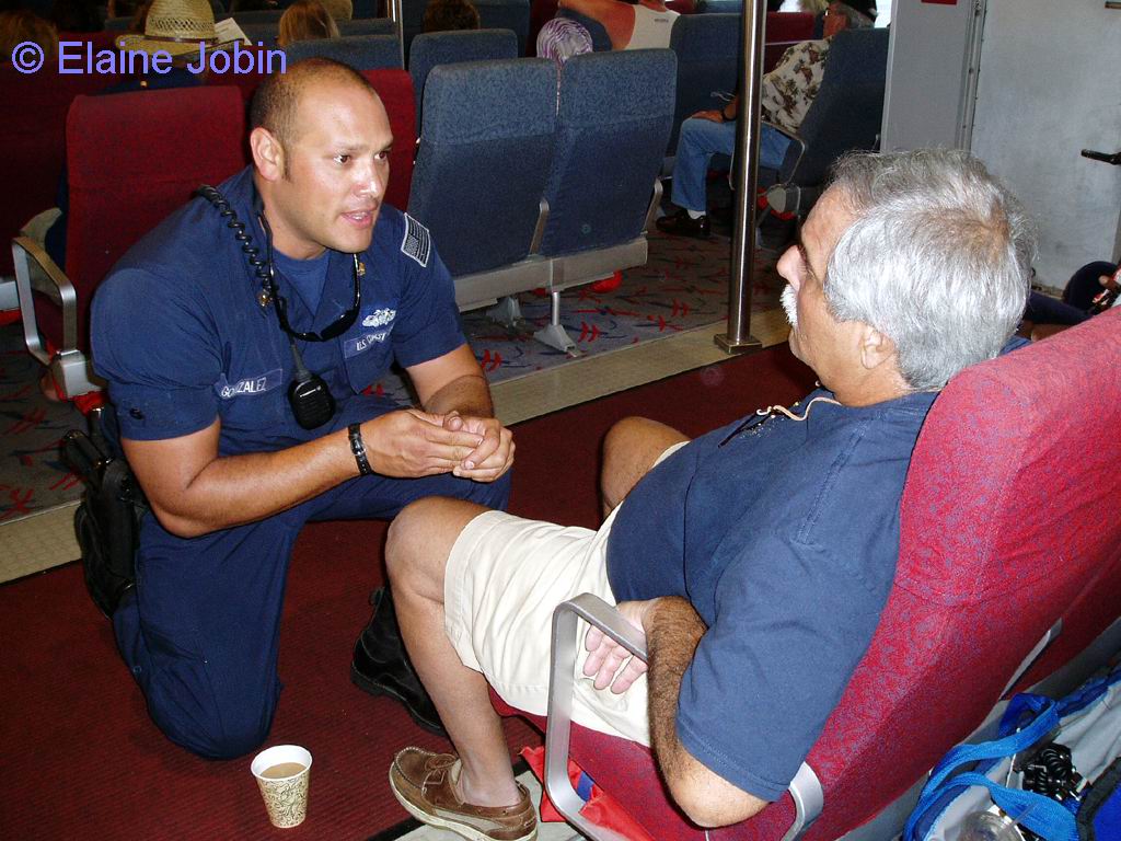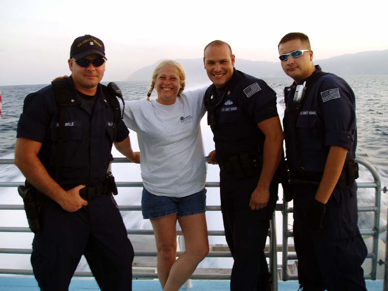 I boarded the Catalina Express for the trip back to Long Beach. Just when I thought the excitement was over - I noticed something very different. Several members of the Coast Guard had boarded my boat and it looked like I was now on a ship commandeered by the Coast Guard. OK...... were these "Coasties" or terrorists dressed like "Coasties"? Man....Just when I thought that it was safe to get out of the water. Was I going home or was I being hijacked, or worse? If it was the Coast Guard on the boat why were they there?