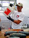 The last of the chum making process involved adding fish oil as a marinade. The completed concoction was then placed into a chum dispenser.