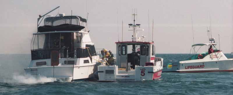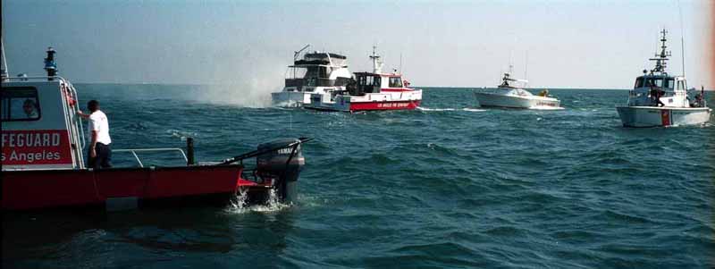 see another fireboat coming and another Baywatch boat as well. The firemen on the first