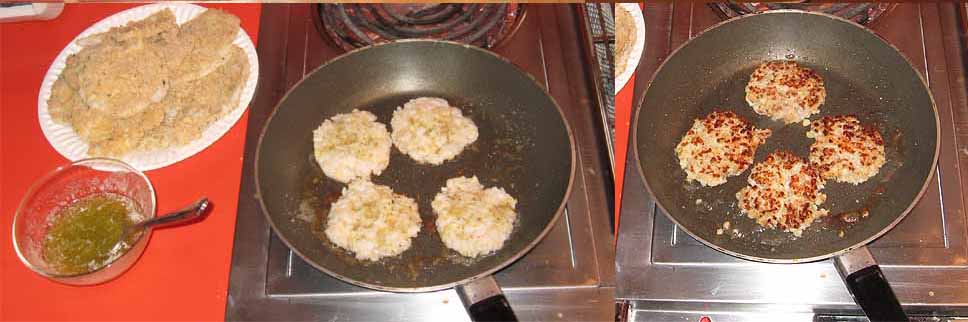 After it's all mixed, make it into patties like mini-hamburger patties that are between 1/4 and 3/8 inches thick. 1/2 inch thick is just too thick to cook well as fast as you try to cook abalone.