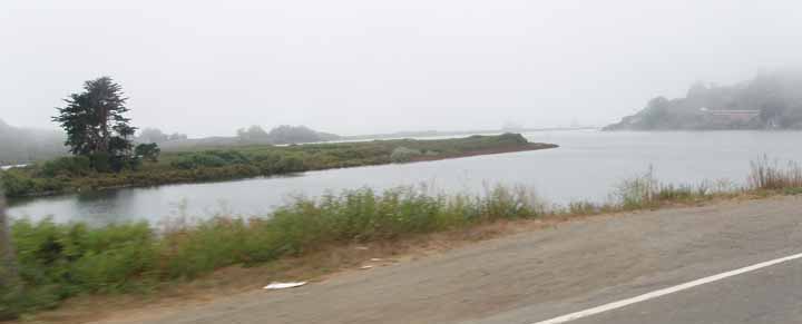 As we got closer to the coast, the Russian River got bigger. I was used to the Russian street names, but this was the first time I saw the sign for the Champs Elysee. We passed through resorts and small towns. Then there were more redwood groves and old barns as we got nearer the coast. Before we reached the coast hiway we were entering fog. South is Bodega Bay, north is Sea Ranch. At the mouth of the river is Jenner and just past that are the sea lion covered sand bars at the river mouth that would tell me what the true dive conditions were. It wasn't calm, but I had seen it bigger. It was probably divable.