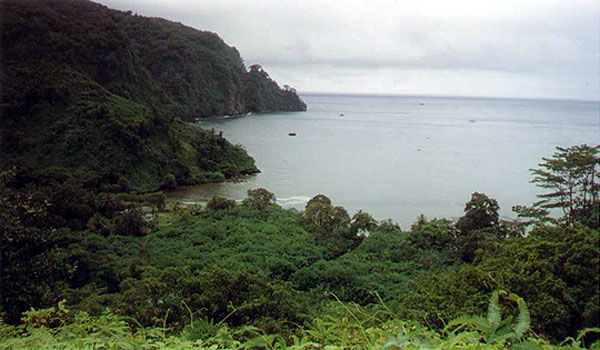 The early morning sun light reminded me that our crossing was coming to an end and the god of foul weather and the witches of the secret sisterhood of the "mal de mer" had been defeated by this brave group of divers. Slowly, one by one, we started showing up with a fresh clean look after the morning shower to the mess hall. Fresh baked croissants and some fresh fruits where decorating the buffet table and a crewmember was taking orders for breakfast. The day was still gloomy and the overcast skies and light rain did put some shivers down your spine. There in the horizon, among a huge boulder of clouds you could start making up a silhouette of this mysterious and phantasmagoric island called Cocos. Dolphins! Dolphins! Was overheard on the bow of the boat dragging everyone out of what they where doing to watch the spectacle. A nice pod was acting as ambassadors and greeting us welcome to this wonder of nature. There in the bow that gloomy and mysterious feeling overwhelmed all of the present and a mental picture of "Phantom´s" Skull Island filled my mind. Among the clouds you could partially see the sharp walls plunging into the sea and the strong surf carving up the stone shores. To all the young ones out there, the "Phantom" was a comic strip character that swore to defend humanity from pirates for generations to come. He lived in a secret Island called Skull island, rode a huge white stallion, carried a couple of colt 45's on his belt and his pet was a wolf.