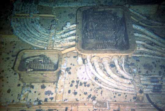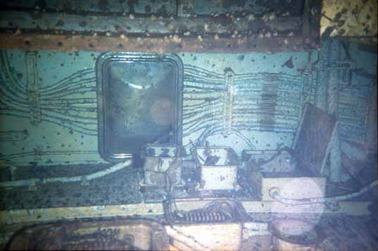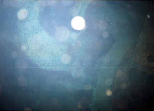 Since silt, or the blackout caused by disturbed silt, is considered one of the primary hazards of wreck diving, I was curious about how much of an issue it was likely to be in this ship. I entered a deeper compartment near the bottom and gave two hard kicks into the silt. There was very little result and certainly not anything like silt outs I've seen before. It was just some crud stirred up. Later, Captain Wood told me that the silt is finer in the rooms with more pipes and wiring. I could see one day a project to pump mud out of the lower parts of the ship.