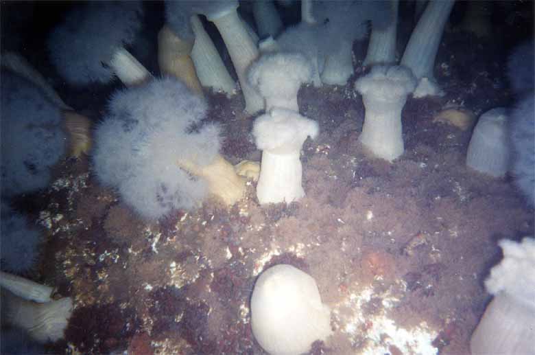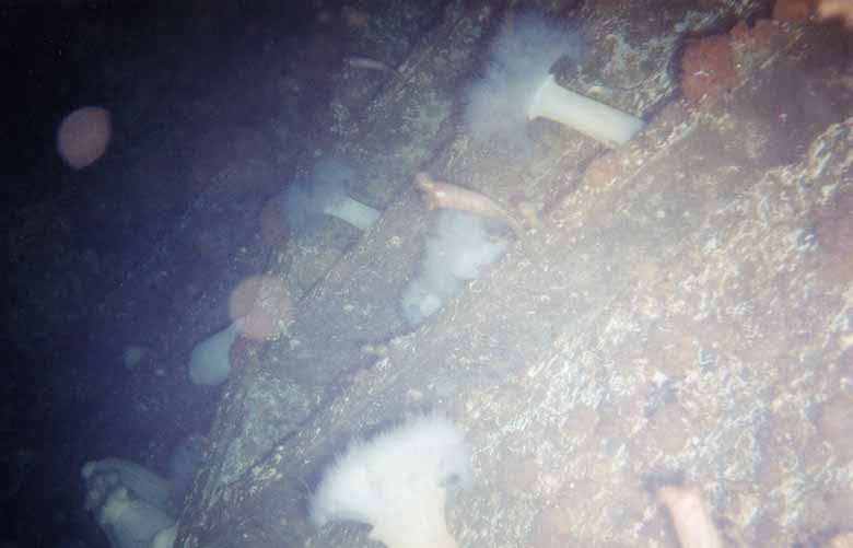 I had sort of run out of ship by now and it was time to move up a bit anyway. I came out under the superstructure. There were a number of divers moving 'over' the deck. I was taking pictures and looking at small deck features to see if I could find some of the cleaner shrimp I had seen last trip. Again, the Metridiums offered fantastic photographic subjects. There were a lot of perch all over the deck as well. With good visibility, it was great looking across the deck.