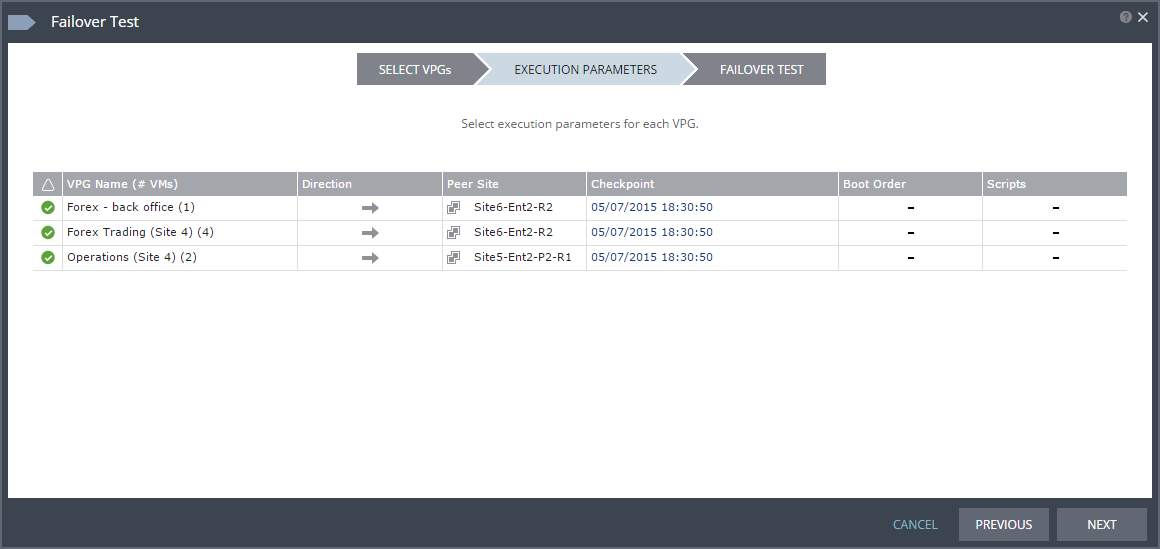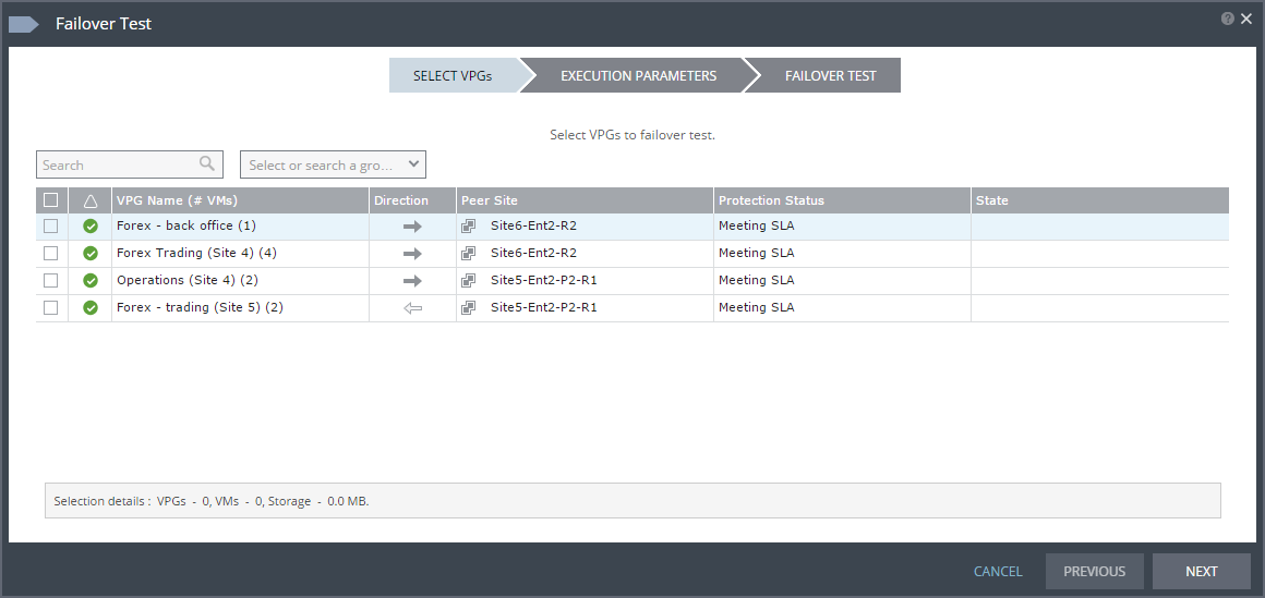 You can test a single VPG or multiple VPGs to make sure that if an actual failover is needed, the failover will perform as expected.