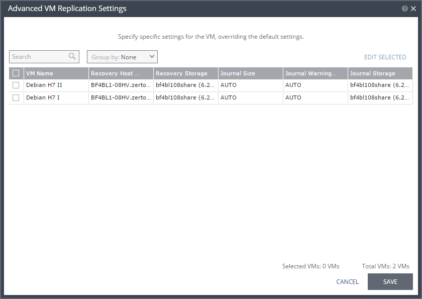 11. Select the virtual machines whose values you want to change and click EDIT SELECTED.