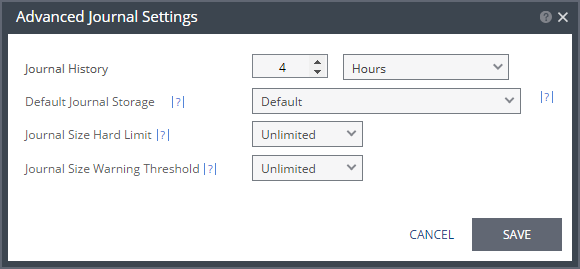 Journal Size Warning Threshold – The size of the journal that triggers a warning that the journal is nearing its hard limit.