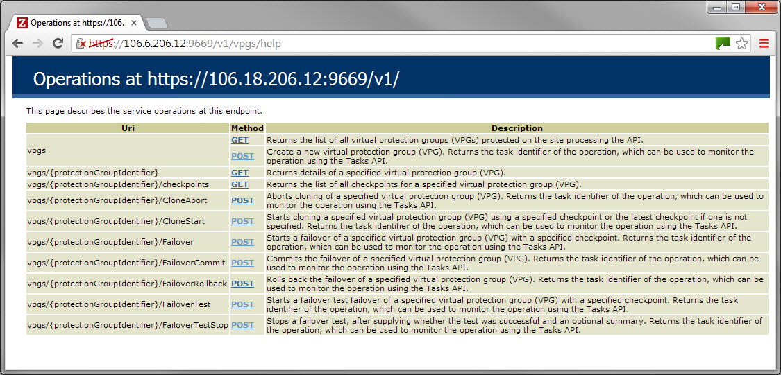 [{"href":"https:\/\/10.100.0.51:9669\/v1\/events","rel":"down","type":"IEventsService"},{"href":"https:\/\/10.100.0.51:9669\/v1\/vpgs","rel":"down","type":"IVpgService"},{"href":"https:\/\/10.100.0.51:9669\/v1\/vms","rel":"down","type":"IVmService"},{"href":"https:\/\/10.100.0.51:9669\/v1\/vras","rel":"down","type":"IVraService"},{"href":"https:\/\/10.100.0.51:9669\/v1\/peersites","rel":"down","type":"IPeerSitesService"},{"href":"https:\/\/10.100.0.51:9669\/v1\/session","rel":"down","type":"ISessionService"},{"href":"https:\/\/10.100.0.51:9669\/v1\/tasks","rel":"down","type":"ITasksService"},{"href":"https:\/\/10.100.0.51:9669\/v1\/serviceprofiles","rel":"down","type":"IServiceProfilesService"},{"href":"https:\/\/10.100.0.51:9669\/v1\/virtualizationsites","rel":"down","type":"IVirtualizationSitesService"},{"href":"https:\/\/10.100.0.51:9669\/v1\/zorgs","rel":"down","type":"IZorgsService"},{"href":"https:\/\/10.100.0.51:9669\/v1\/localsite","rel":"down","type":"ILocalSiteService"},{"href":"https:\/\/10.100.0.51:9669\/v1\/alerts","rel":"down","type":"IAlertsService"}] |
