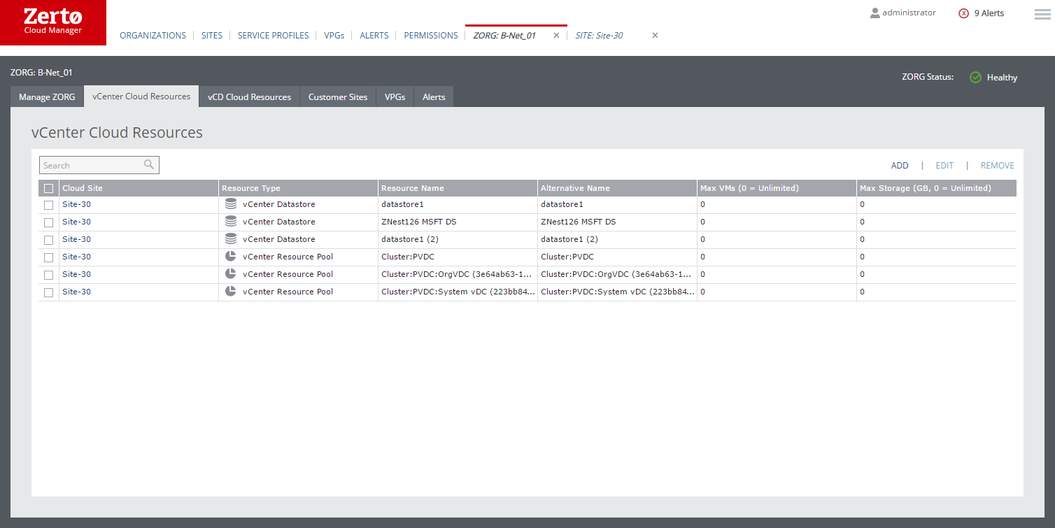 Editing Zerto Cloud Manager Definitions