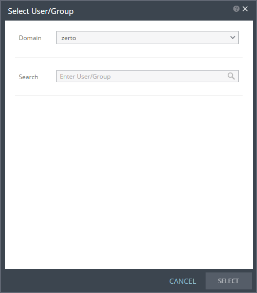 After entering the search criteria, click Enter to display the results of the search to enable selecting a user or group.