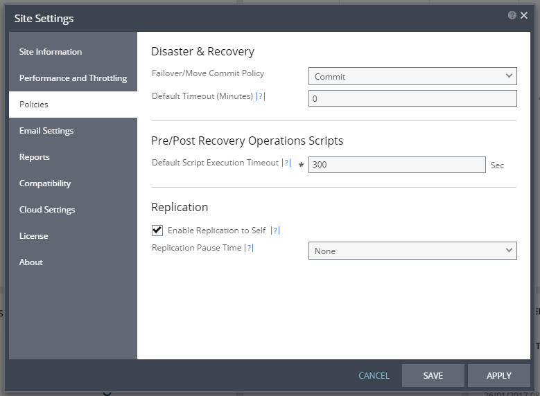 Enable Replication to Self – Enable the same site to be used as both the protected and recovery site.