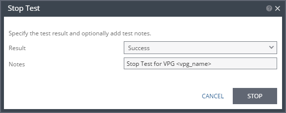 Stop Failover Test Dialog