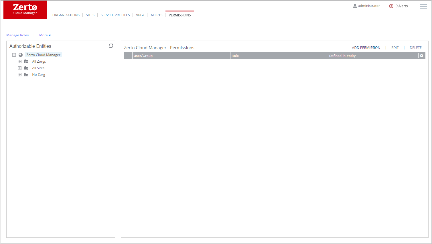 Enables adding, editing, or deleting permissions for Zerto entities and to manage roles for these entitles.