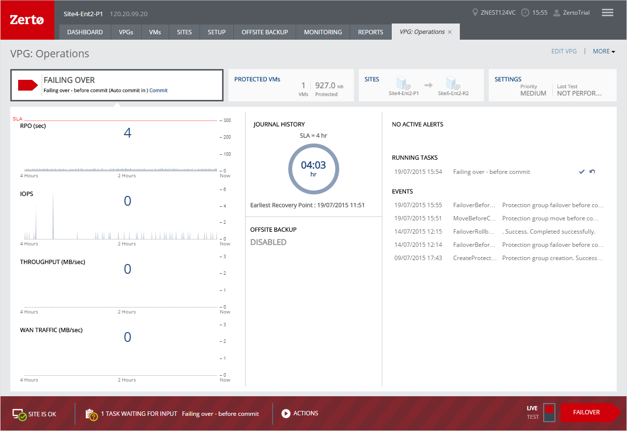 1. In the Zerto User Interface set the operation to LIVE and click FAILOVER.