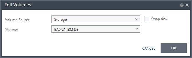 Storage – The default storage volume to use for the recovered virtual machine files and for their data volumes. Every storage for the recovery host is included in the drop-down list. If a cluster is selected for the host, only storage accessible by every host in the cluster are displayed.