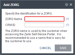 The Zerto Cloud Manager User Interface : Add ZORG Dialog