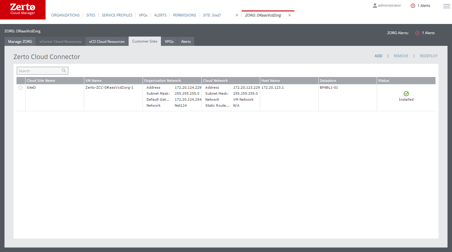 Cloud Site – The cloud site for which the Zerto Cloud Connector is required.