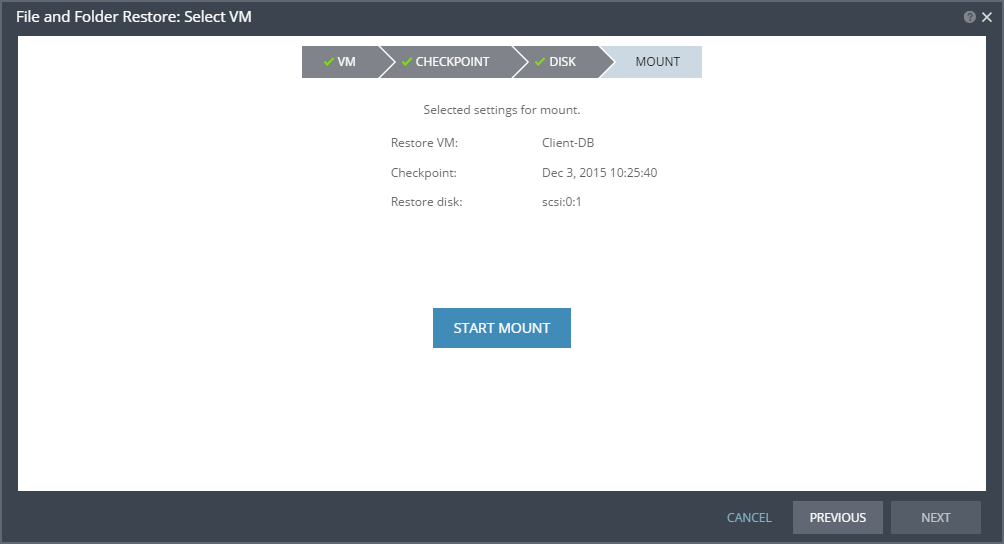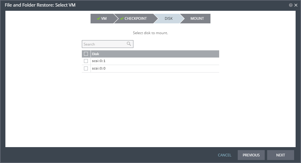 Mounting the disk may take some time, depending on the selected checkpoint and the number of files and folders on the disk.