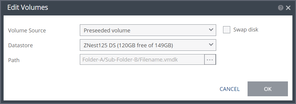 Volume Source – The source on the recovery site for the replicated data: Datastore, RDM or Preseeded volume.