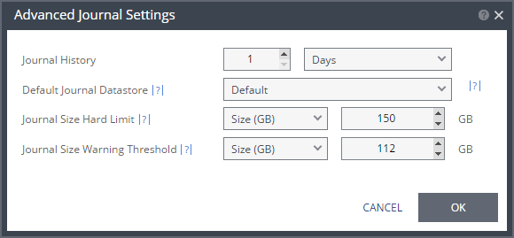 The Zerto Virtual Manager User Interface : Advanced Journal Settings Dialog