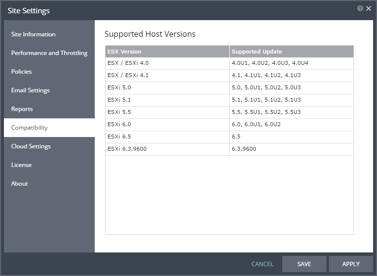Supported Update – The supported updates for the ESX or ESXi version.