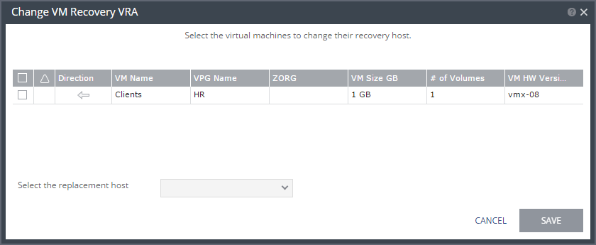 ■ The VPG recovery host definitions are changed and the affected target data, including the journals, storage vMotioned to the VRA under the replacement host.