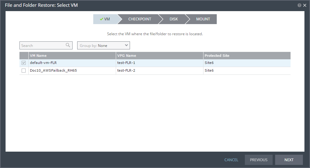 2. Select the virtual machine on which the file or folder is located and click NEXT.