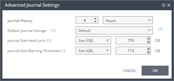 Journal Size Warning Threshold: The size of the journal that triggers a warning that the journal is nearing its hard limit.