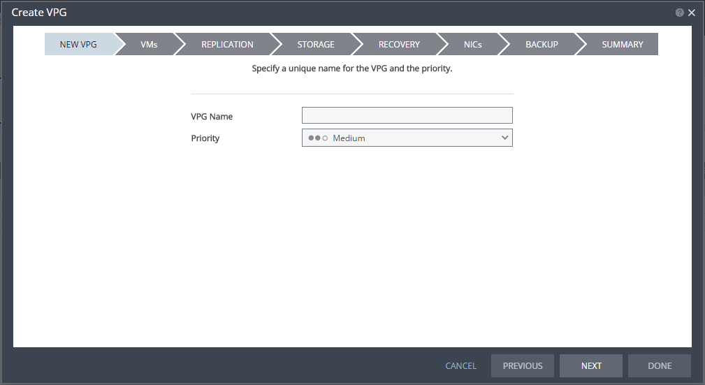 VPG Name – The VPG name must be unique. The name cannot be more than 80 characters.
