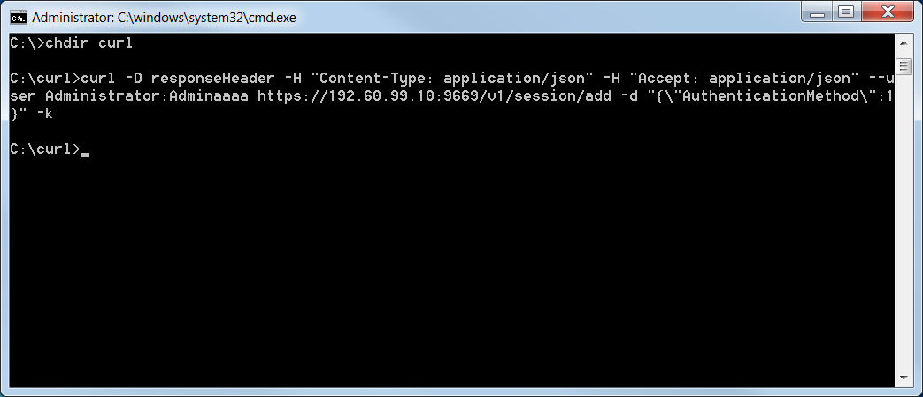 curl -D responseHeader -H "Content-Type: application/json" -H "Accept: application/json" --user user:password https://zvm_ip:9669/v1/session/add -d "{\"AuthenticationMethod\":1}" -k |